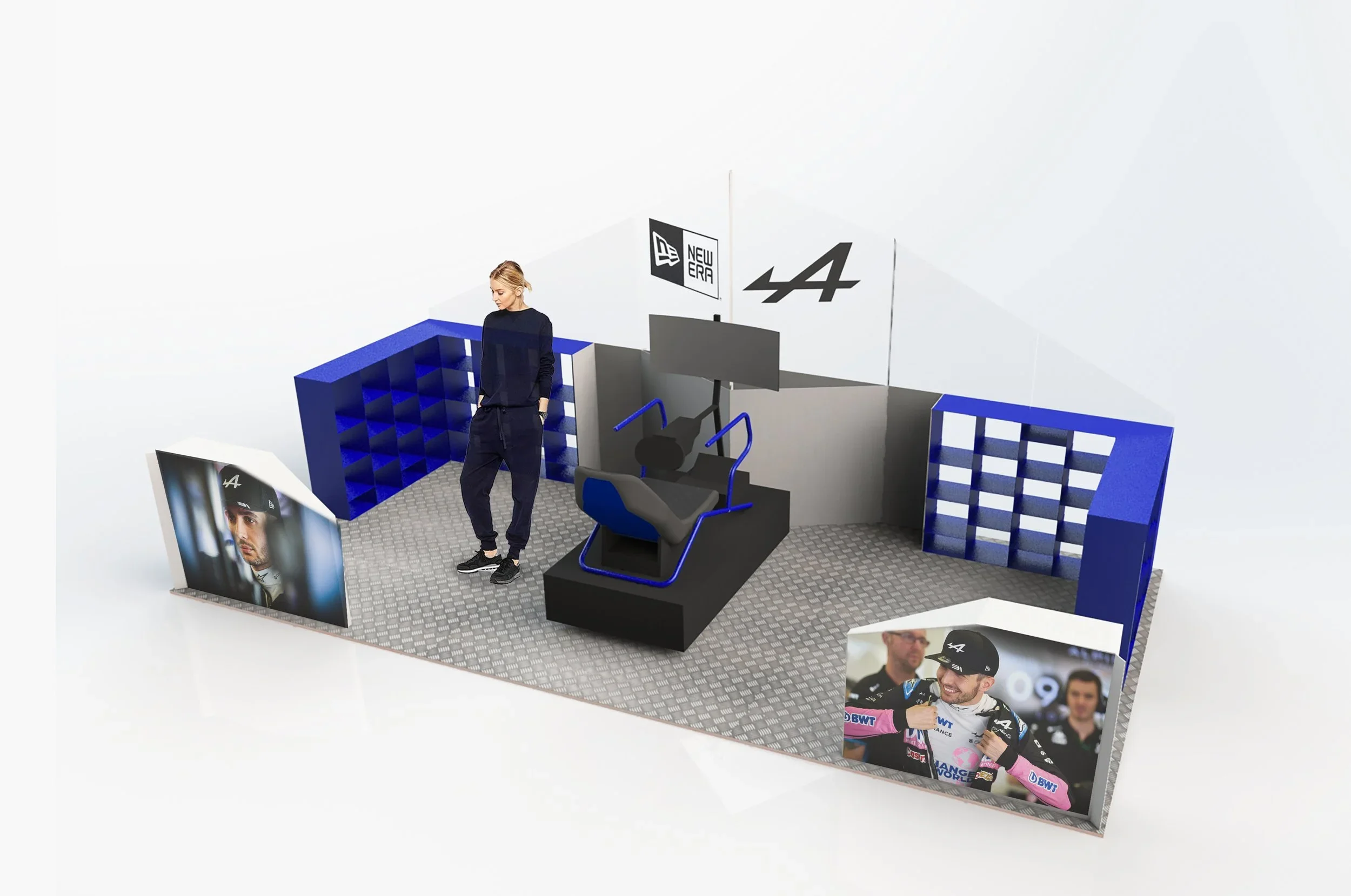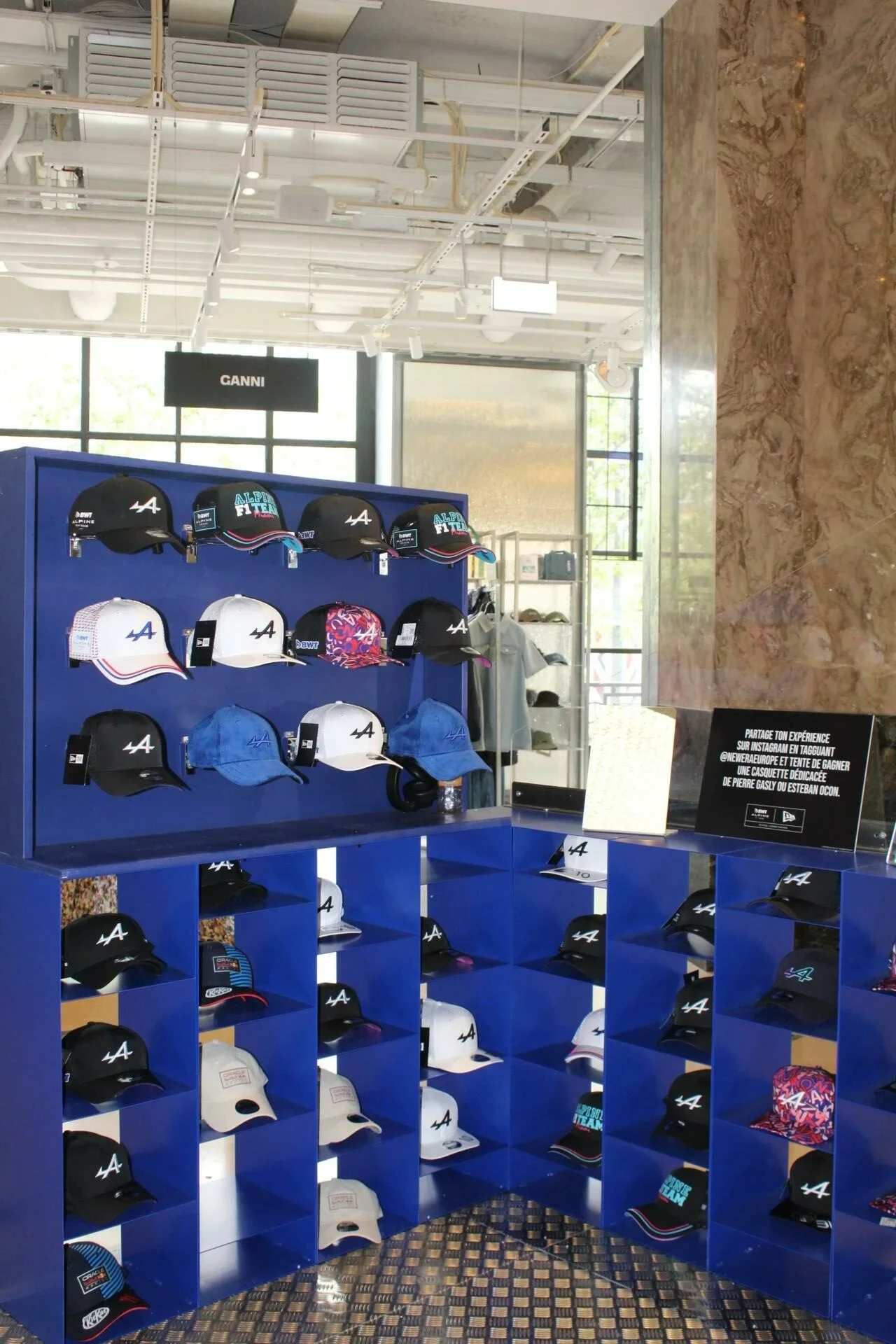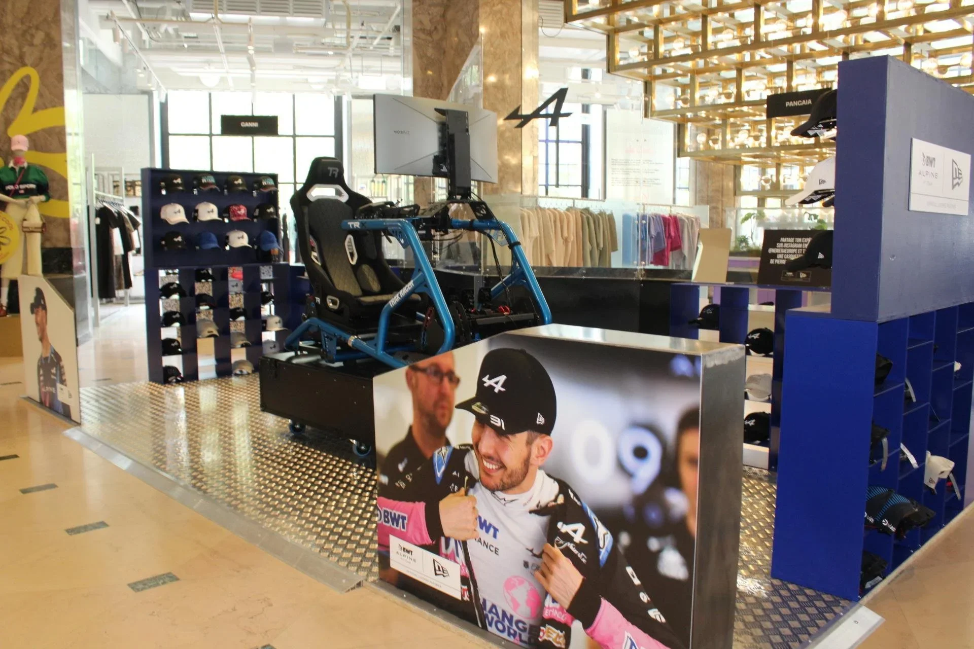Dans le cadre de son partenariat avec l’écurie de F1 Alpine, l’emblématique marque de casquettes souhaitait créer un pop-up store et une animation événementielle au cœur des Galeries Lafayette Champs-Élysées.
