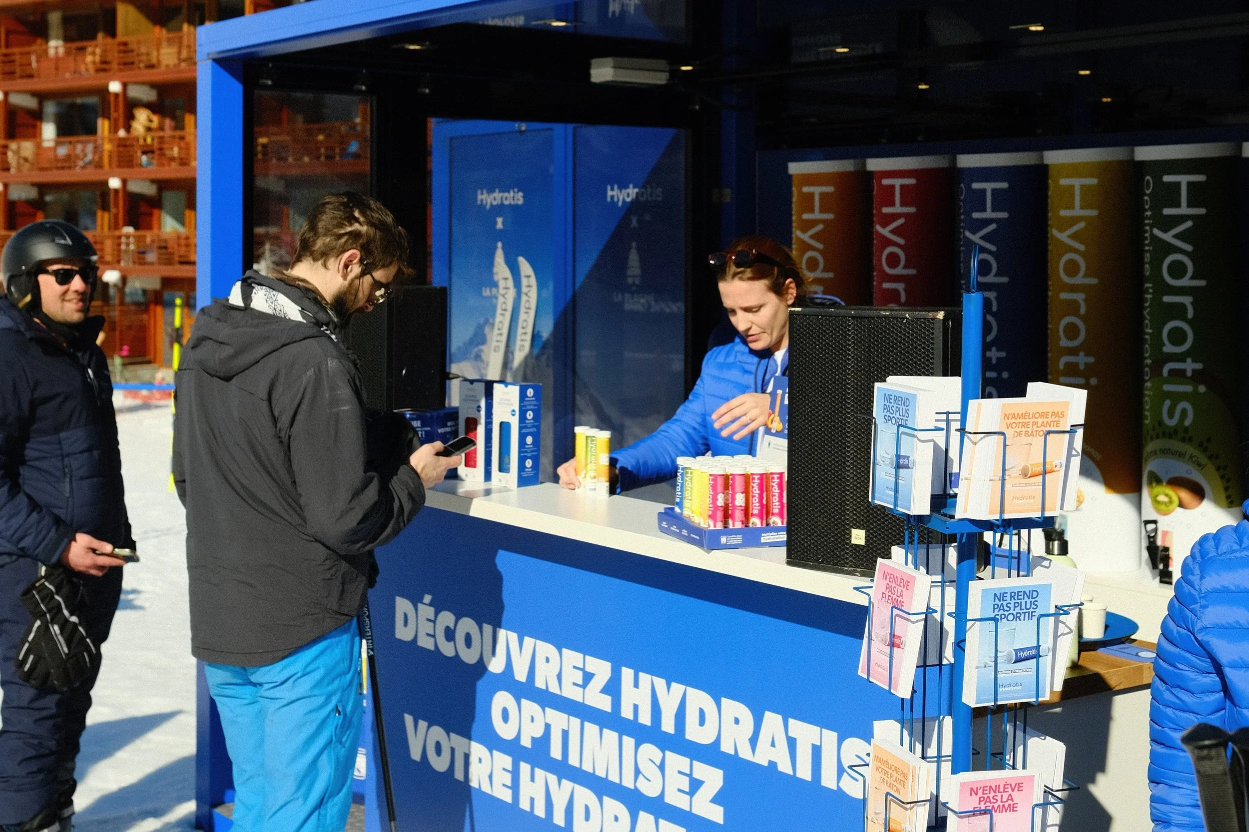 Sensibilisation terrain : Hydratis sort des pharmacies pour aller à la rencontre des skieurs et vacanciers.